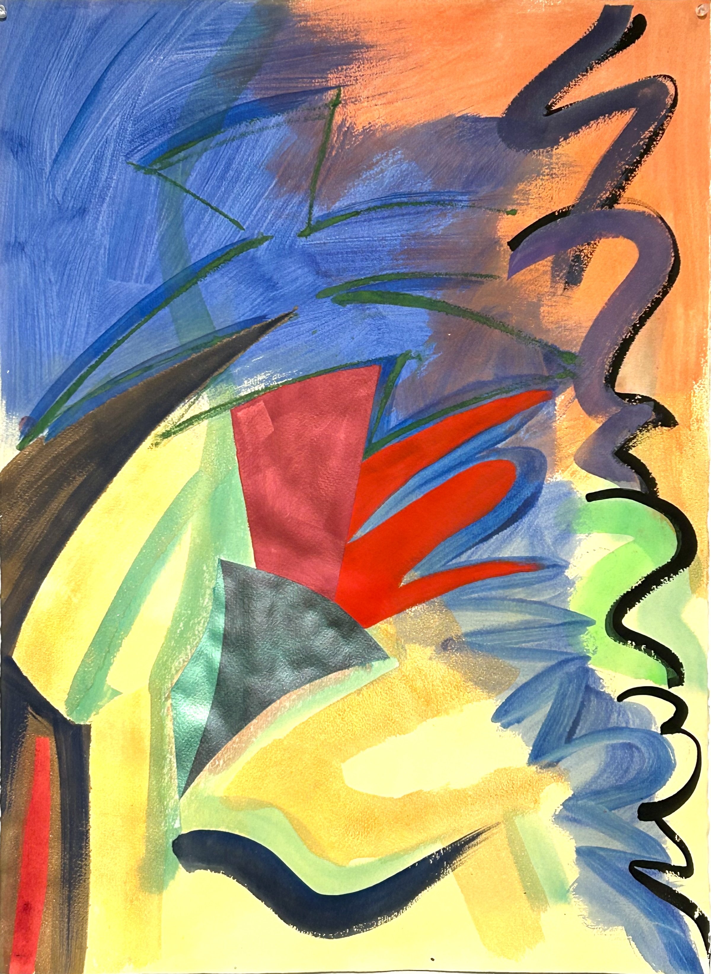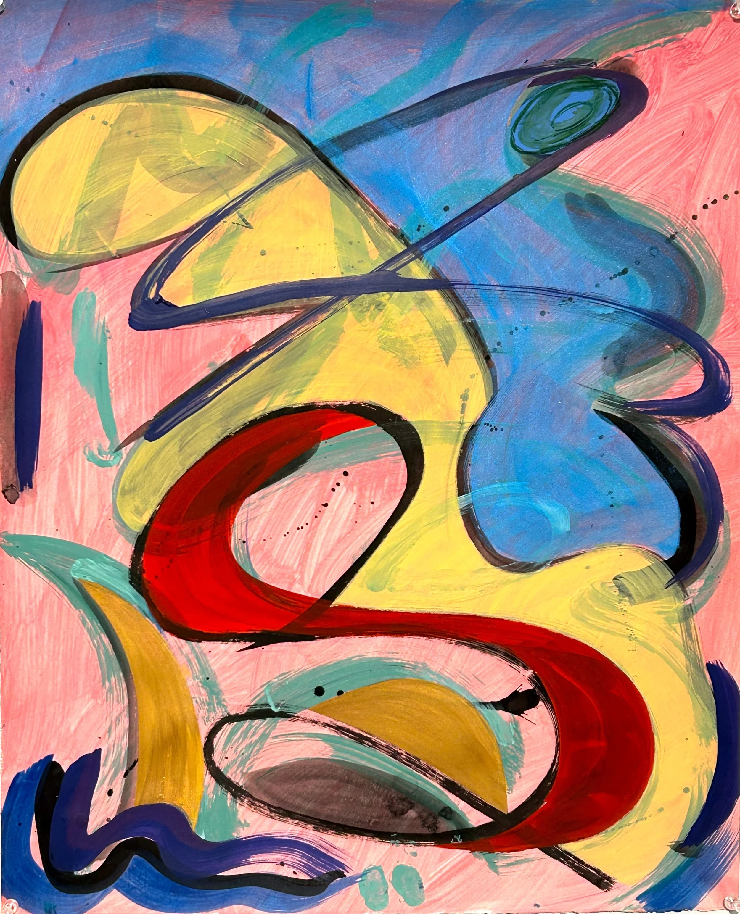 Abstraction with Royal Red Knight, 2026, Gouache and Acrylic on Paper, H 28” X W 24