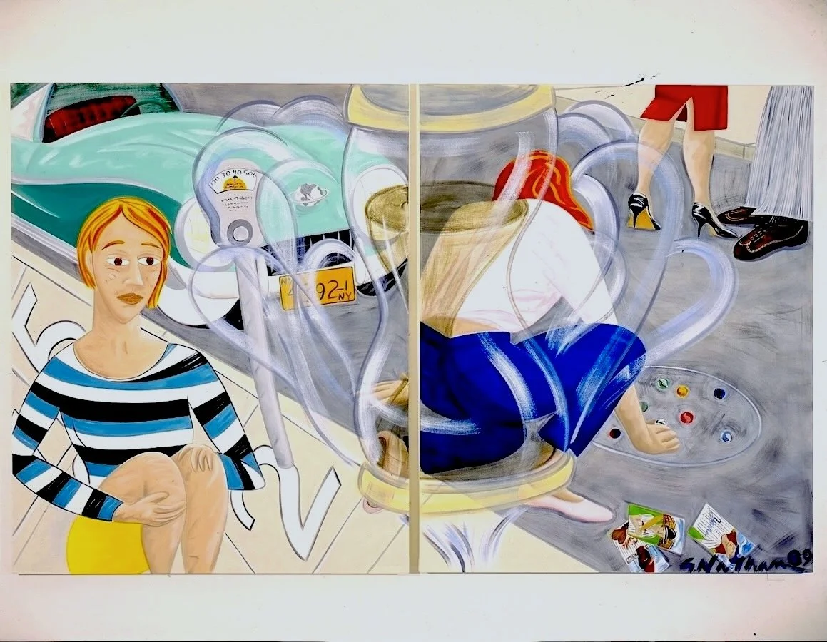 Time Bomb: Growing Up in the Bronx, 1987, Oil on Canvas, H 75” X W 132”, Diptych